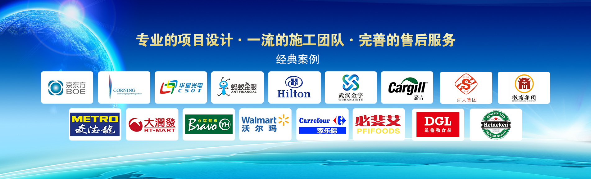 冷凍冷藏設備大型冷庫項目:   武漢中百物流冷庫(40000㎡)、蘇州、北京普洛斯大型物流庫(17000㎡)、沈陽佳德物流冷庫(20000㎡)、上海東航配餐物流庫(6000㎡)、杭州華商勾莊物流冷庫(24000㎡)、安徽安心蔬菜綠色食品冷庫(12000㎡)、武漢金宇冷庫(35000㎡)、必斐艾食品廠(14000㎡)、中國-東盟(百色)農(nóng)產(chǎn)品交易中心冷庫物流工程(30000㎡)、遵鐵物流冷鏈物流區(qū)建設項目中心冷庫物流工程(16500㎡)、長沙云冷產(chǎn)業(yè)園冷庫物流工程(21000㎡)等;大型中央空調(diào)項目:   武漢康寧顯示玻璃廠廠房、武漢京東方模組廠房、武漢華星光電模組廠房、深圳華星光電模組廠房,杭州阿里巴巴辦公樓,舟山波音737機場辦公樓,南京江北能源站、上海金融大酒店等